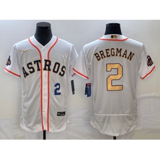 Men's Houston Astros #2 Alex Bregman Number 2023 White Gold World Serise Champions Flex Base Stitched Jersey