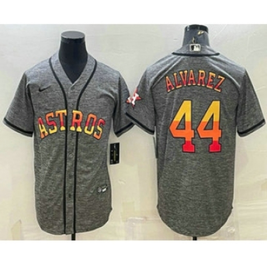 Men's Houston Astros #44 Yordan Alvarez Grey Gridiron With Patch Cool Base Stitched Baseball Jersey