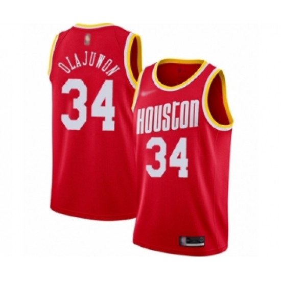Men's Nike Houston Rockets #34 Hakeem Olajuwon Red Swingman Jersey - Earned Edition