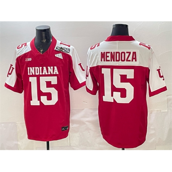 Men's Indiana Hoosiers #15 Fernando Mendoza 2025 F.U.S.E. Rose Bowl Red White Stitched Jersey