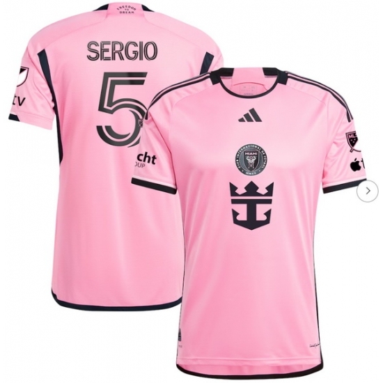 Men's Inter Miami CF #5 sergio 2023-24 Pink Home Soccer Jersey Suit