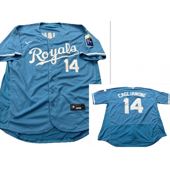 Men's Kansas City Royals #14 Jac Caglianone Light Blue Cool Base Stitched Baseball Jersey