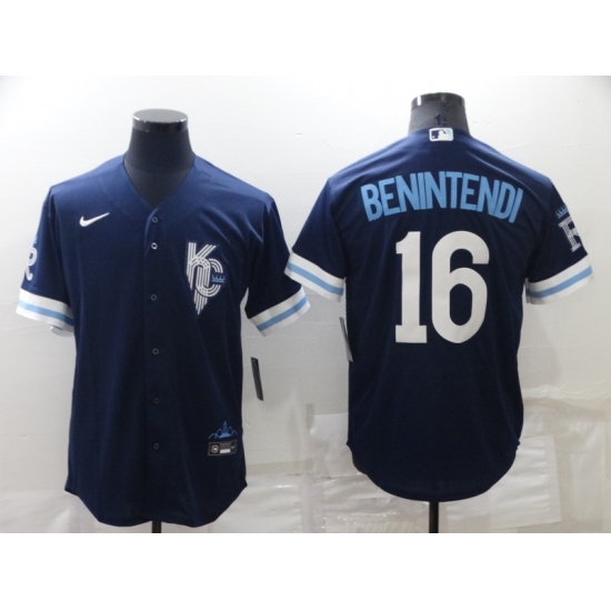 Men's Kansas City Royals #16 Bo Jackson 2022 Navy Blue City Connect Cool Base Jersey