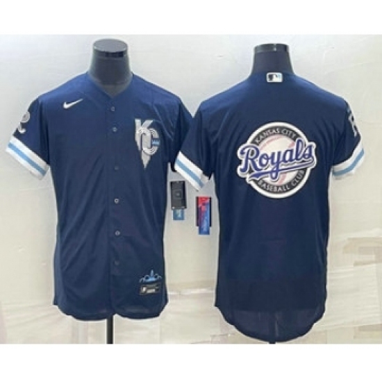 Men's Kansas City Royals Big Logo 2022 Navy Blue City Connect Flex Base Stitched Jerseys