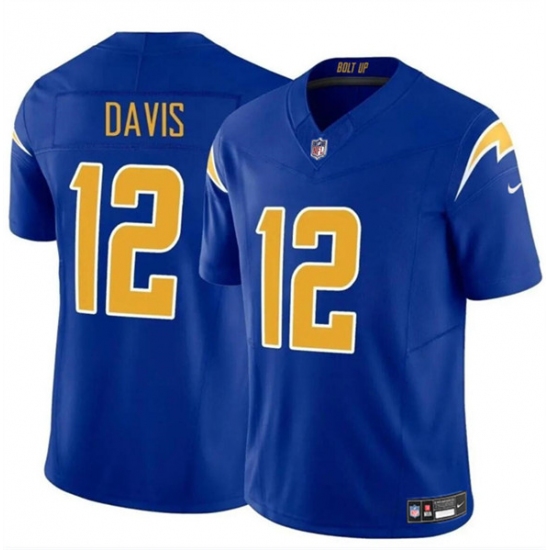 >Men's Los Angeles Chargers #12 Derius Davis Royal 2024 F.U.S.E. Vapor Limited Football Stitched Jersey