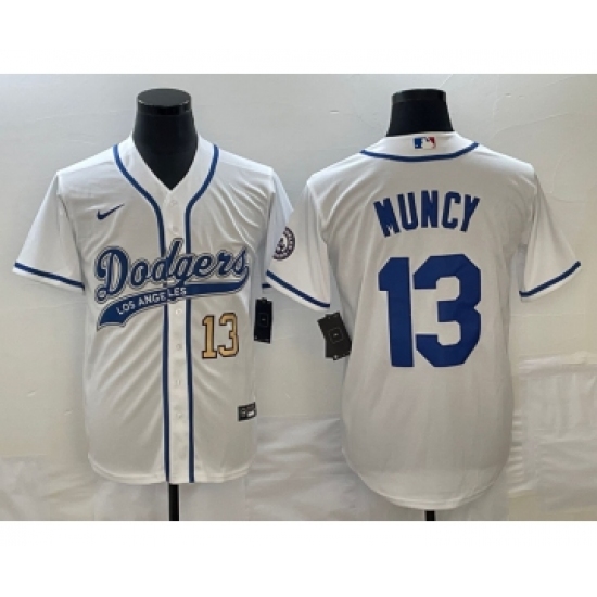 Men's Los Angeles Dodgers #13 Max Muncy Number White Cool Base Stitched Baseball Jersey