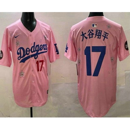 Men's Los Angeles Dodgers #17 Shohei Ohtani Pink Japanese 2025 Tokyo Series Limited Jersey