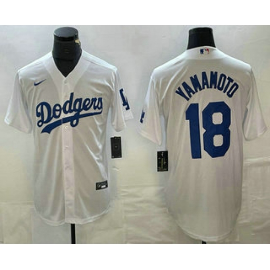 >Men's Los Angeles Dodgers #18 Yoshinobu Yamamoto White Stitched Cool Base Nike Jersey