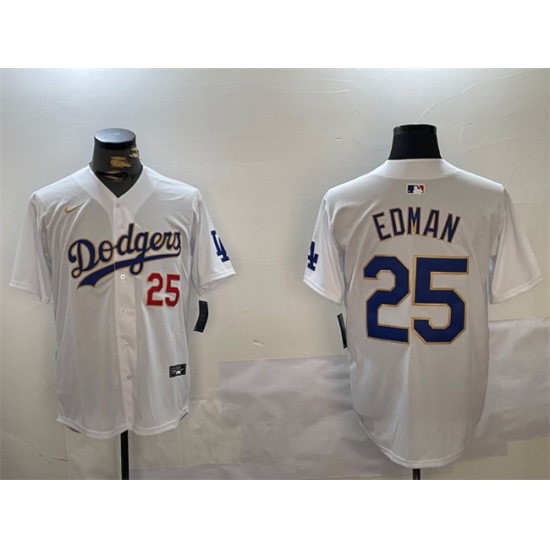 Men's Los Angeles Dodgers #25 Tommy Edman White Gold Home Limited Stitched Baseball Jersey