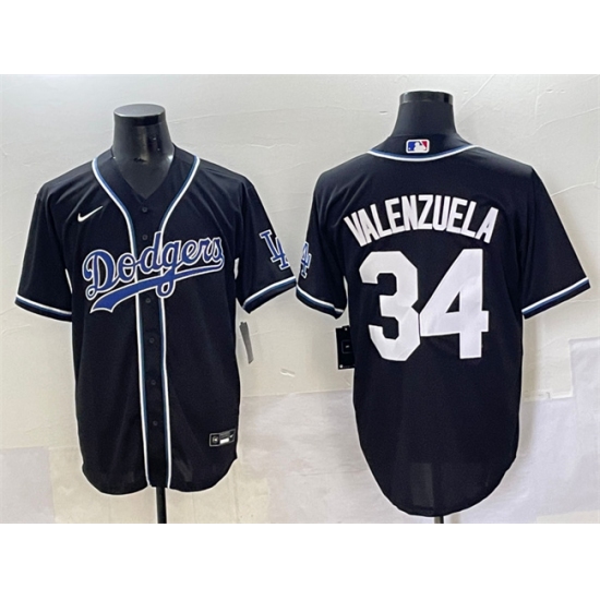 >Men's Los Angeles Dodgers #34 Fernando Valenzuela Black Fashion Stitched Baseball Jersey