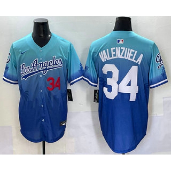 Men's Los Angeles Dodgers #34 Fernando Valenzuela Blue 2025 City Connect Limited Stitched Jersey