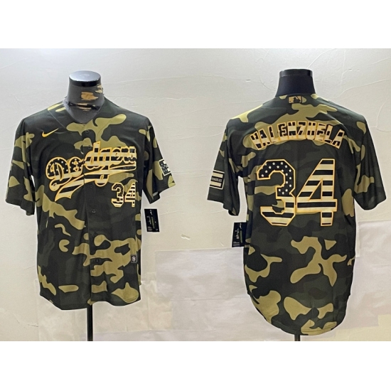 Men's Los Angeles Dodgers #34 Fernando Valenzuela camo Authentic Collection Stitched MLB Jersey