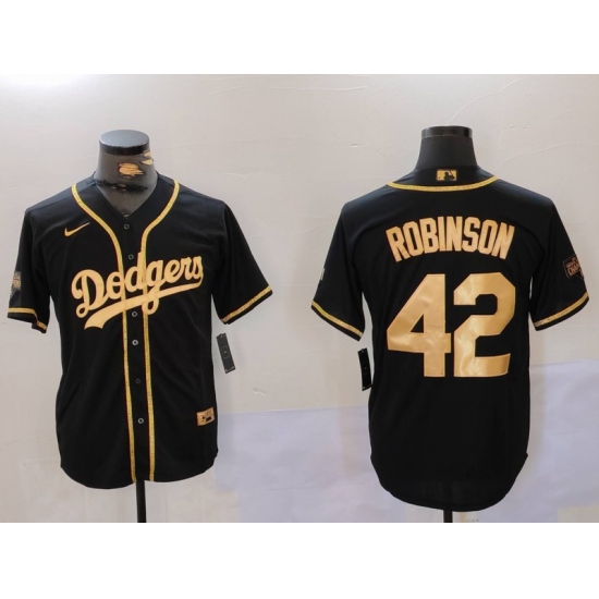Men's Los Angeles Dodgers #42 Jackie Robinson Black Gold Limited Stitched Jersey