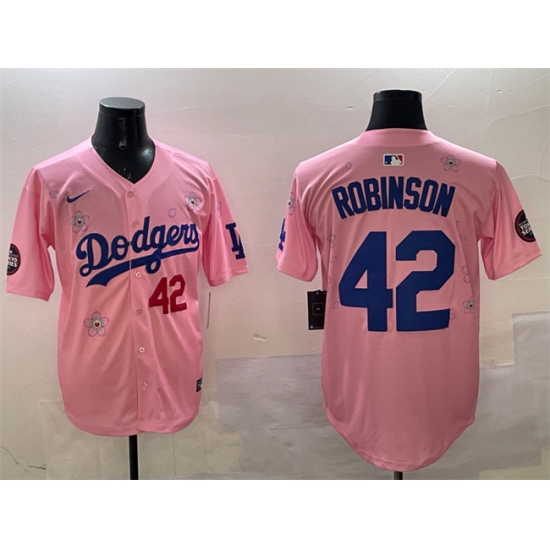 Men's Los Angeles Dodgers #42 Jackie Robinson Pink 2025 Tokyo Series Limited Stitched Baseball Jersey