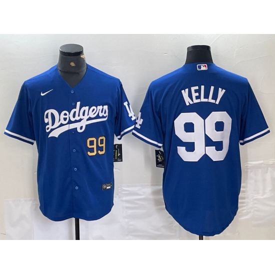 Mens Los Angeles Dodgers #99 Joe Kelly Number Blue Stitched Cool Base Nike Jersey