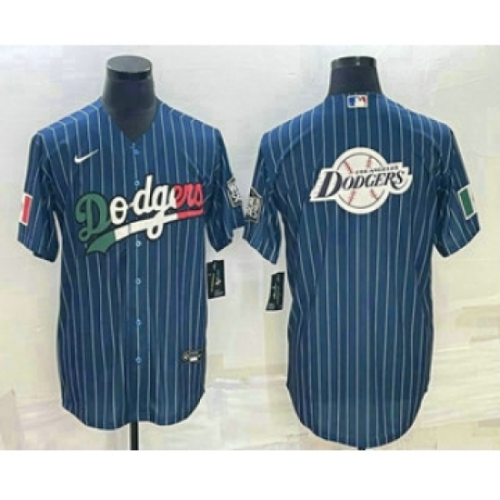 >Men's Los Angeles Dodgers Big Logo Navy Blue Pinstripe Stitched MLB Cool Base Nike Jersey5
