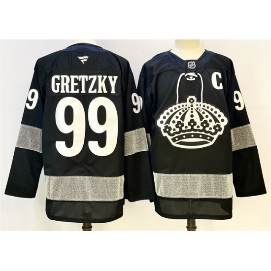 Men's Los Angeles Kings #99 Wayne Gretzky Black 2024-25 Home With C Stitched Hockey Jersey