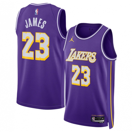 Men's Los Angeles Lakers #23 LeBron James Purple 2025 Statement Edition Stitched Basketball Jersey