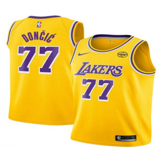 >Men's Los Angeles Lakers #77 Luka Doncic Yellow 2025 Icon Edition Stitched Jersey