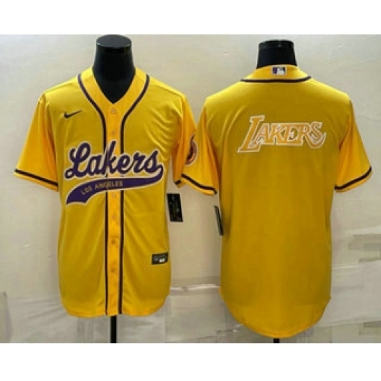 Men's Los Angeles Lakers Yellow Big Logo Cool Base Stitched Baseball Jerseys