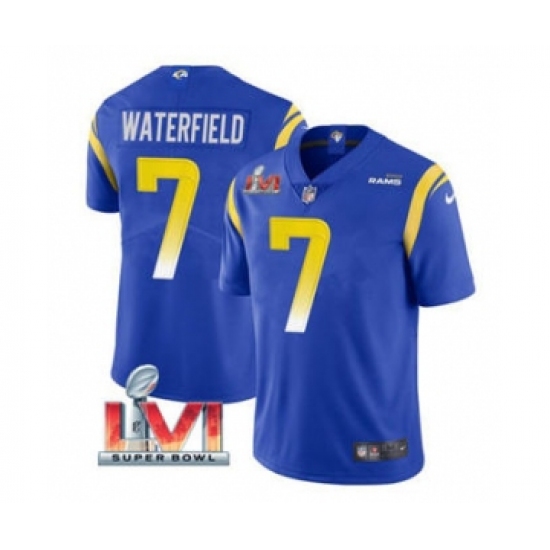 >Men's Los Angeles Rams #7 Bob Waterfield Royal 2022 Super Bowl LVI Vapor Limited Stitched Jersey