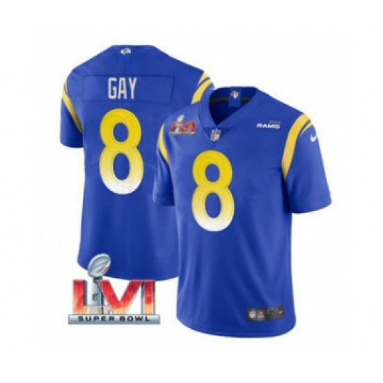 Men's Los Angeles Rams #8 Matt Gay Royal 2022 Super Bowl LVI Vapor Limited Stitched Jersey