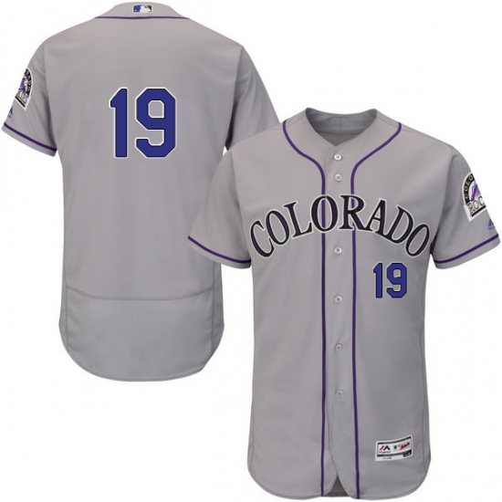 Home>MLB>Colorado Rockies>Charlie Blackmon>Men's Majestic Colorado Rockies #19 Charlie Blackmon Grey Road Flex Base Authentic Collection MLB Jersey