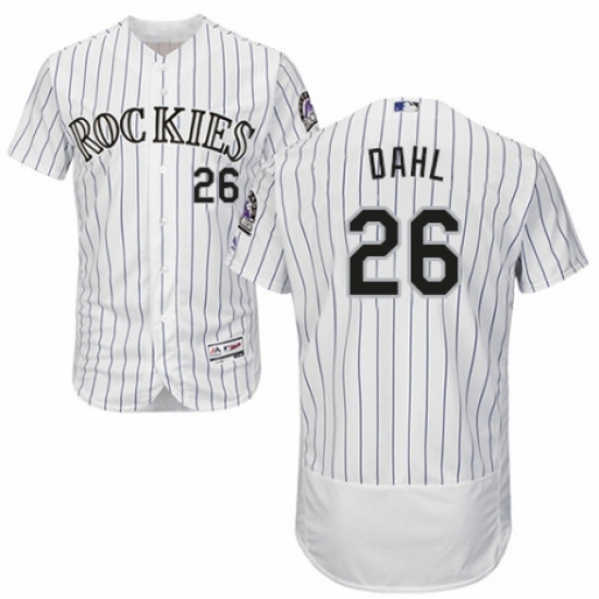>Men's Majestic Colorado Rockies #26 David Dahl White Home Flex Base Authentic Collection MLB Jersey