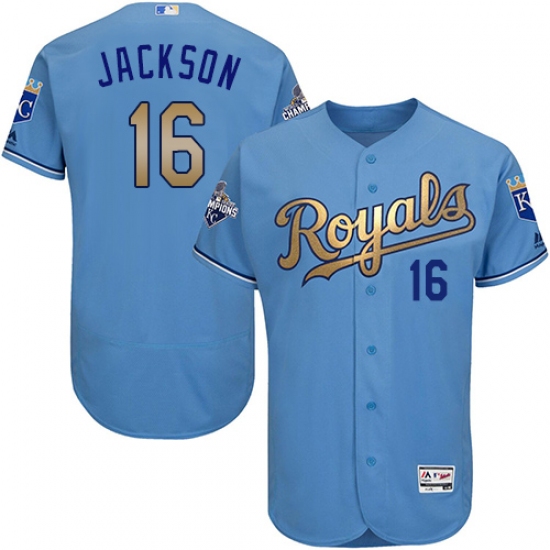Home>MLB>Kansas City Royals>Bo Jackson>Men's Majestic Kansas City Royals #16 Bo Jackson Authentic Light Blue 2015 World Series Champions Gold Program FlexBase MLB Jersey