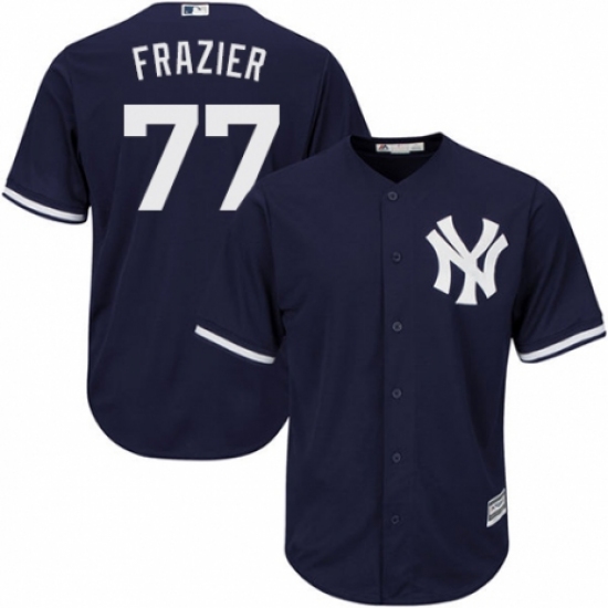 >Men's Majestic New York Yankees #77 Clint Frazier Replica Navy Blue Alternate MLB Jersey