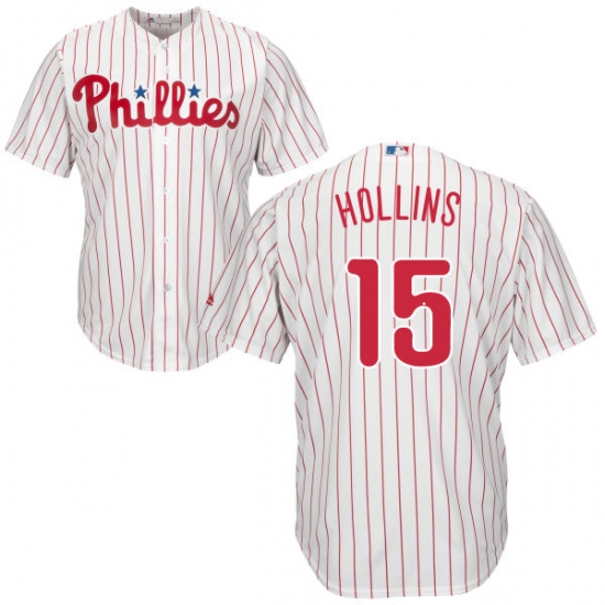 Home>MLB>Philadelphia Phillies>Dave Hollins>Men's Majestic Philadelphia Phillies #15 Dave Hollins Replica White/Red Strip Home Cool Base MLB Jersey
