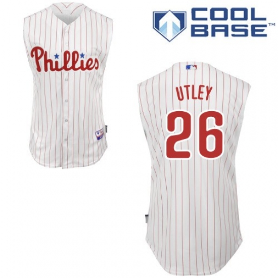 Men's Majestic Philadelphia Phillies #26 Chase Utley Authentic White/Red Strip Vest Style MLB Jersey