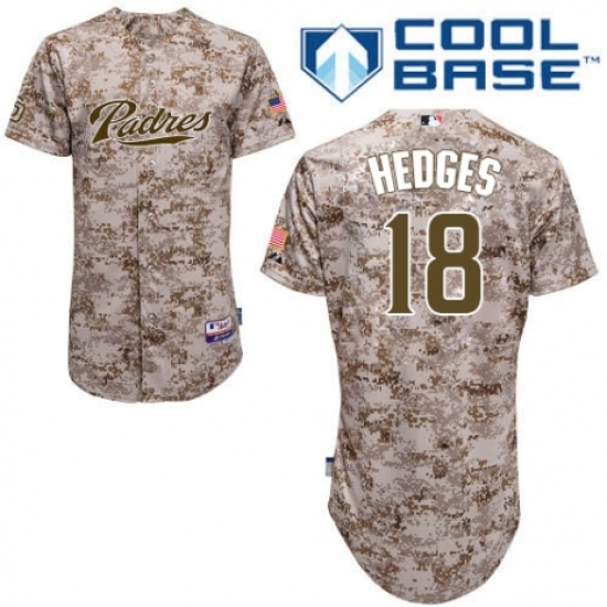 >Men's Majestic San Diego Padres #18 Austin Hedges Authentic Camo Alternate 2 Cool Base MLB Jersey