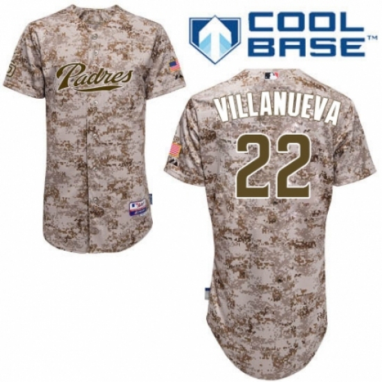 >Men's Majestic San Diego Padres #22 Christian Villanueva Replica Camo Alternate 2 Cool Base MLB Jersey