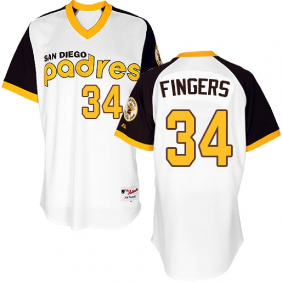 Men's Majestic San Diego Padres #34 Rollie Fingers Authentic White 1978 Turn Back The Clock MLB Jersey