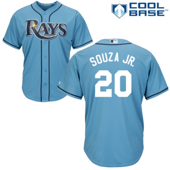Home>MLB>Tampa Bay Rays>Steven Souza>Men's Majestic Tampa Bay Rays #20 Steven Souza Replica Light Blue Alternate 2 Cool Base MLB Jersey