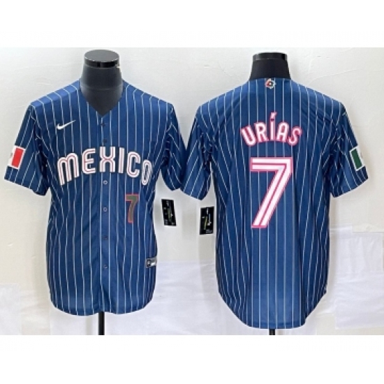 Men's Mexico Baseball #7 Julio Urías 2023 Navy World Baseball Classic Stitched Jersey3