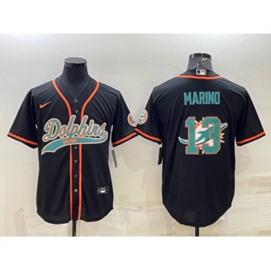 Men's Miami Dolphins #13 Dan Marino Black Team Big Logo With Patch Cool Base Stitched Baseball Jersey