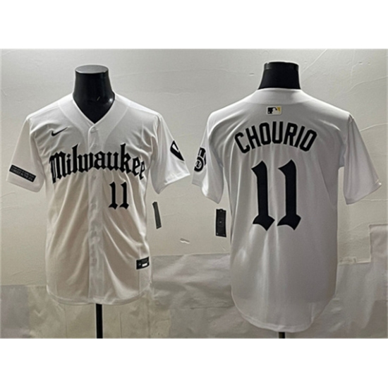 Men's Milwaukee Brewers #11 Jackson Chourio White 'Gothic 414 Shadows Edition' Vapor Premier Limited Stitched Jersey