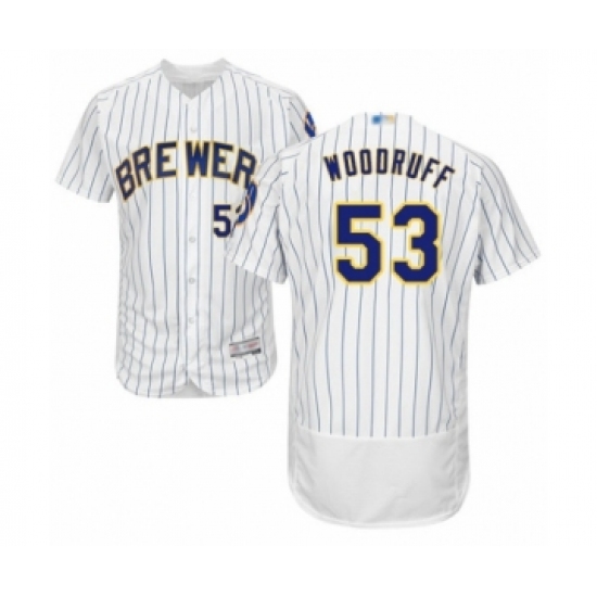 Men's Milwaukee Brewers #53 Brandon Woodruff White Home Flex Base Authentic Collection Baseball Jersey