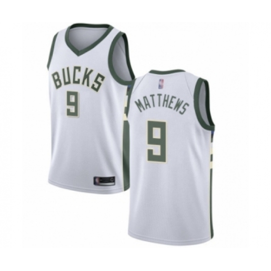 >Men's Milwaukee Bucks #9 Wesley Matthews Authentic White Basketball Jersey - Association Edition