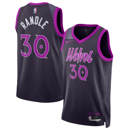 >Men's Minnesota Timberwolves #30 Julius Randle Purple 2025-26 City Edition Stitched Basketball Jersey