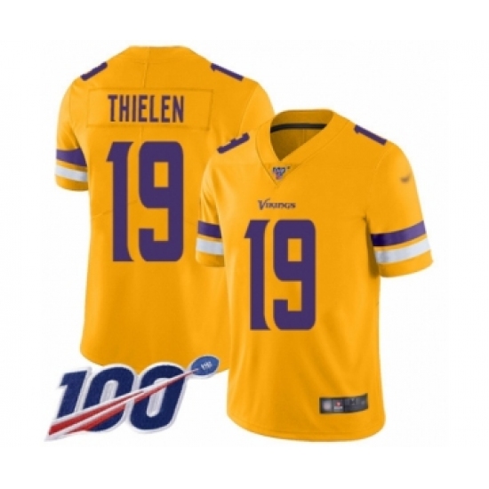 Men's Minnesota Vikings #19 Adam Thielen Limited Gold Inverted Legend 100th Season Football Jersey