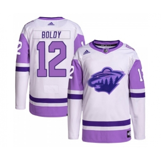 Men's Minnesota Wild #12 Matthew Boldy White Purple 2022 Stitched Jersey