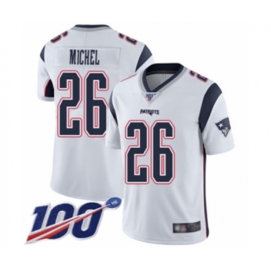 Men's New England Patriots #26 Sony Michel White Vapor Untouchable Limited Player 100th Season Football Jersey