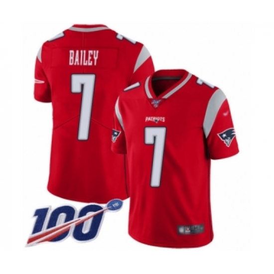 Men's New England Patriots #7 Jake Bailey Limited Red Inverted Legend 100th Season Football Jersey