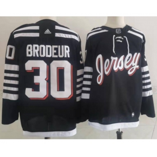 Men's New Jersey Devils #30 Martin Brodeur adidas Black 2021-22 Alternate Primegreen Authentic Pro Player Third Jersey