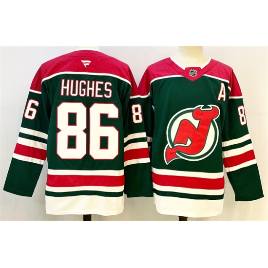 Men's New Jersey Devils #86 Jack Hughes Green Red 2024-25 With A Stitched Hockey Jersey