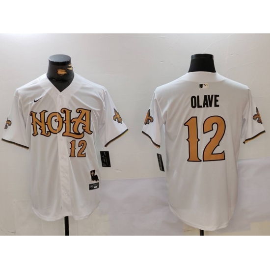 Men's New Orleans Saints #12 Chris Olave Number White Nola Baseball Jerseys