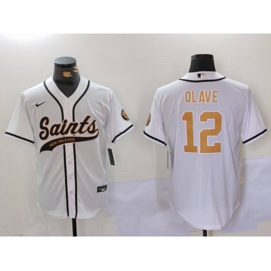 Men's New Orleans Saints #12 Chris Olave Number White Nola Baseball Jerseys